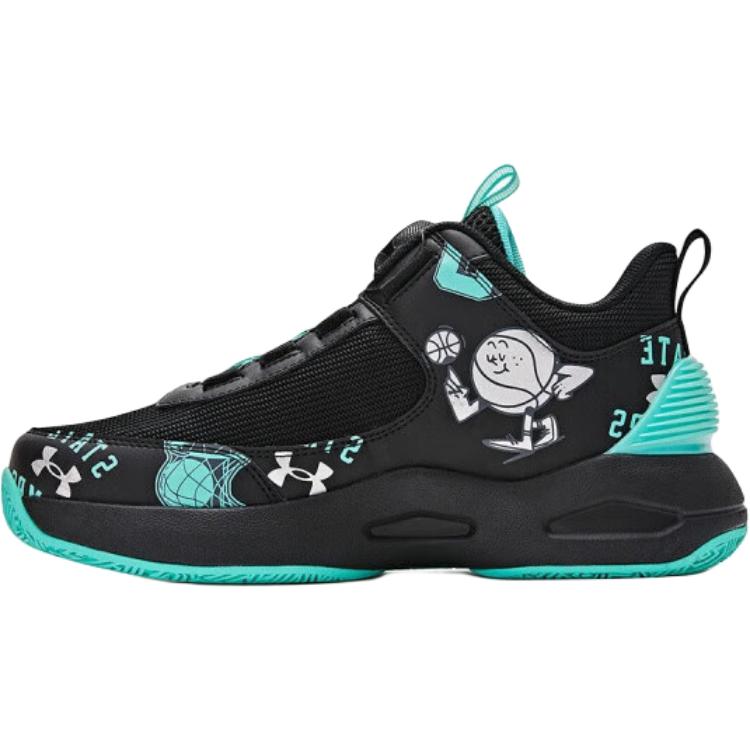Амортизирующие износостойкие дышащие противоскользящие низкие детские баскетбольные кроссовки Under Armour, черный/зеленый