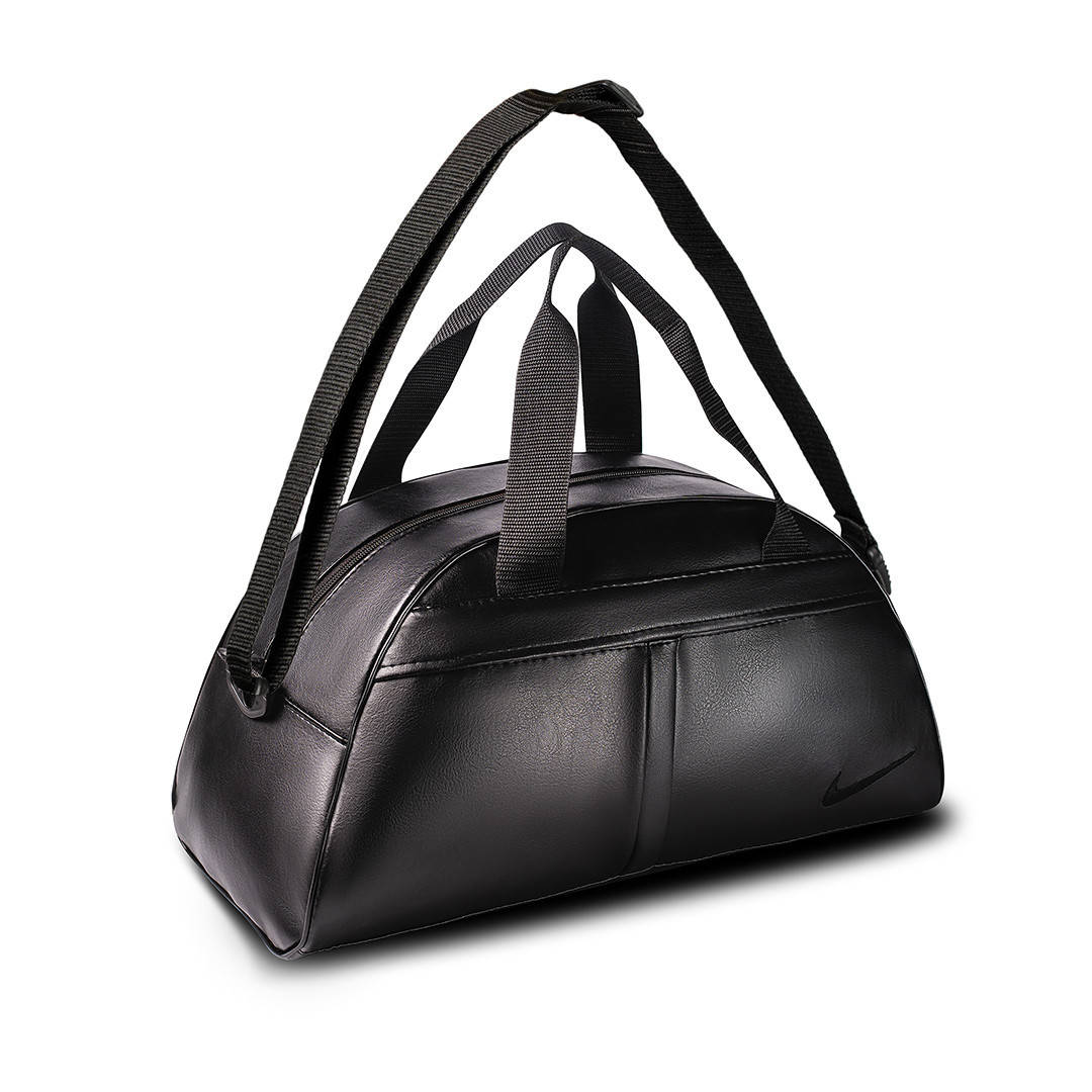 Спортивная сумка Nike черного цвета пошита из высококачественной PU-кожи. Оснащена съёмным ремнем чтобы носить её через плечо и двумя ручками для ношения в руке. На передней части сумки есть карман на молнии для мелких вещей. Отлично подходит для похода в тренажерный зал или может использоваться как дорожная сумка для переноски личных вещей. Спереди сумка украшена фирменной вышивкой.