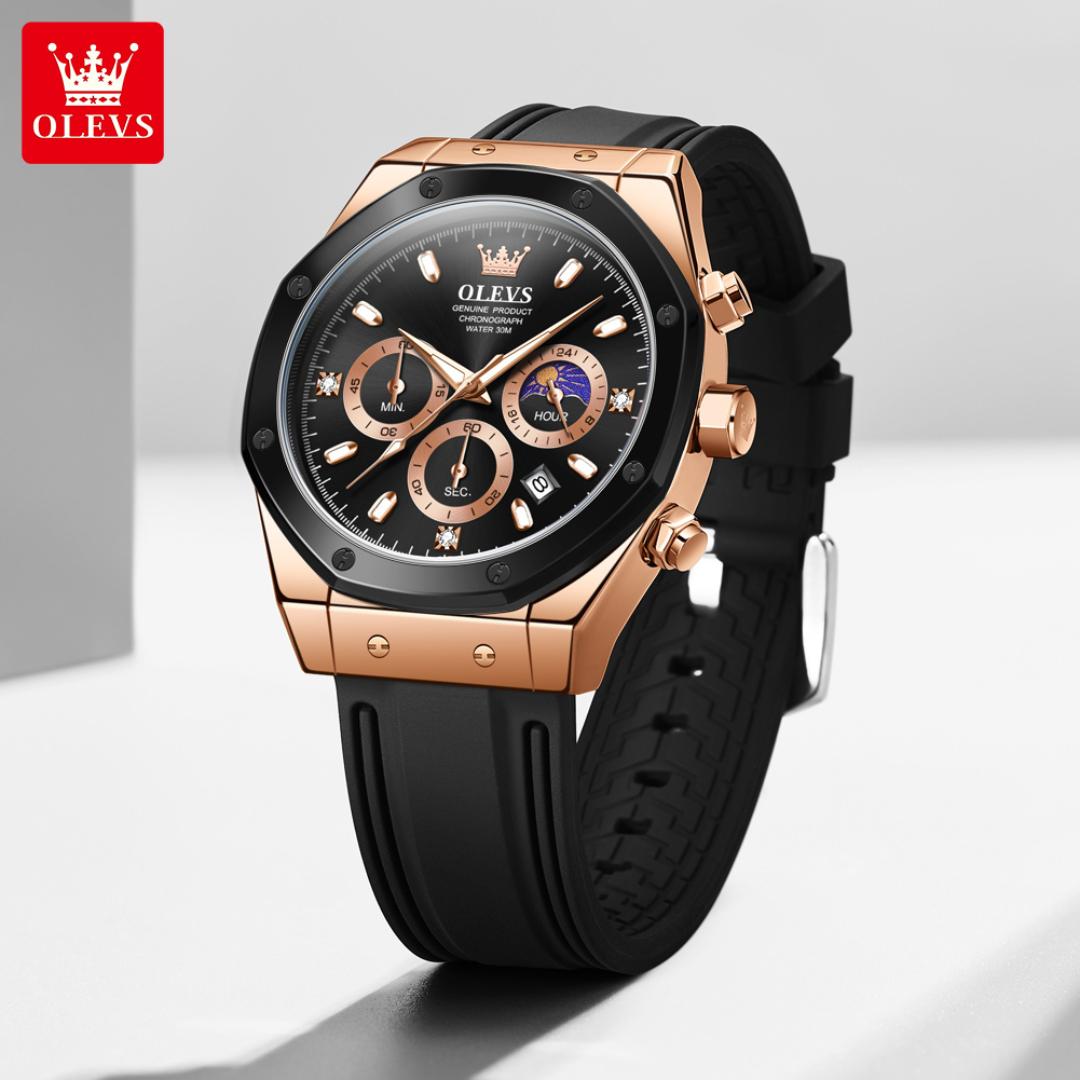Спортивные кварцевые часы Подарочные силиконовый ремешок для часов Круглый циферблат Наручные часы Календарь фазы Луны Светящийся таймер ярко-розовый