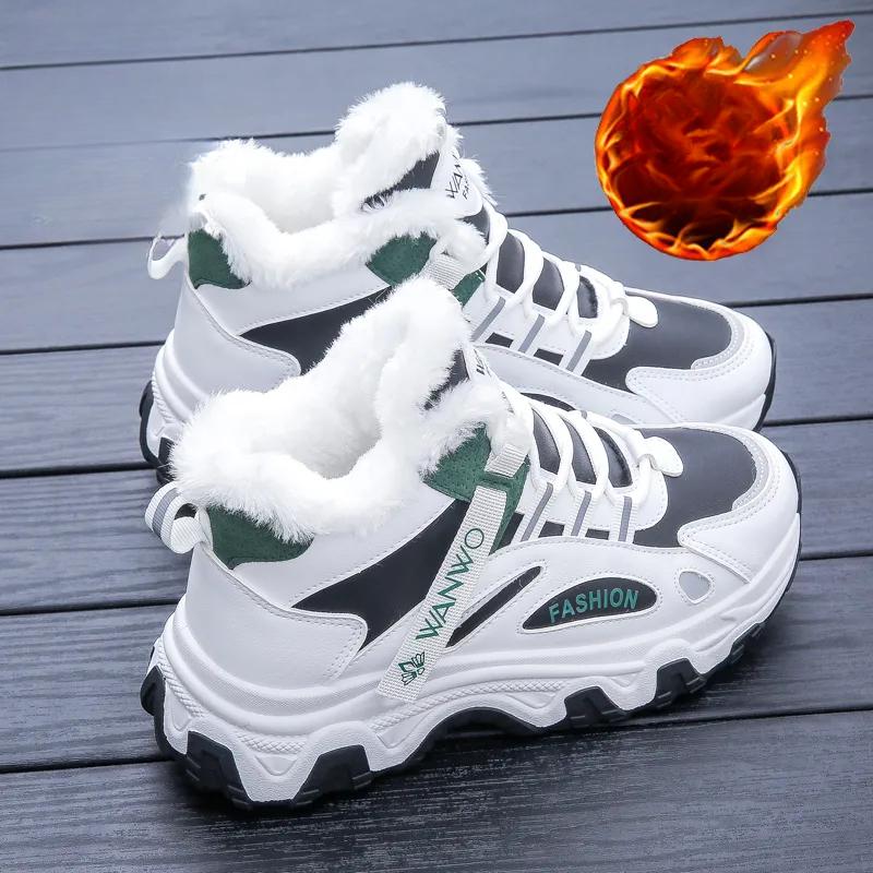 Спортивные туфли Plus Velvet на толстой подошве, женские зимние утепленные зимние ботинки, модные нескользящие высокие хлопковые туфли 39 чёрный