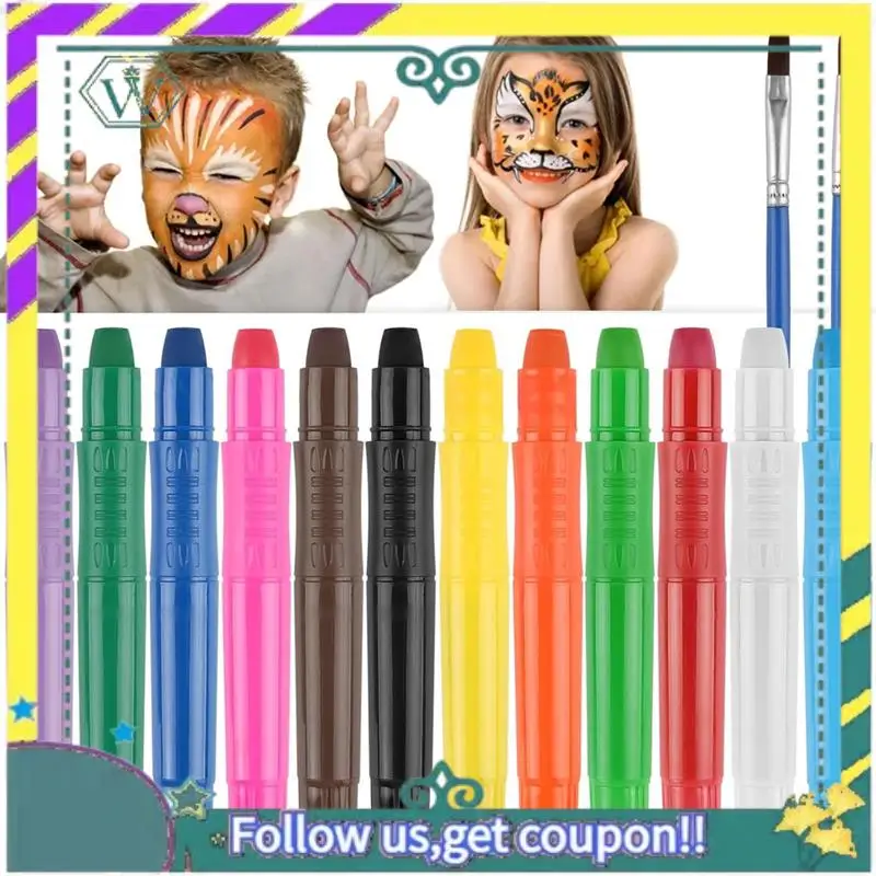НОВЫЙ набор для рисования лица для детей, 12 цветов, моющиеся поворотные мелки для краски для лица с 2 кистями для вечеринки, Хэллоуина, косплея