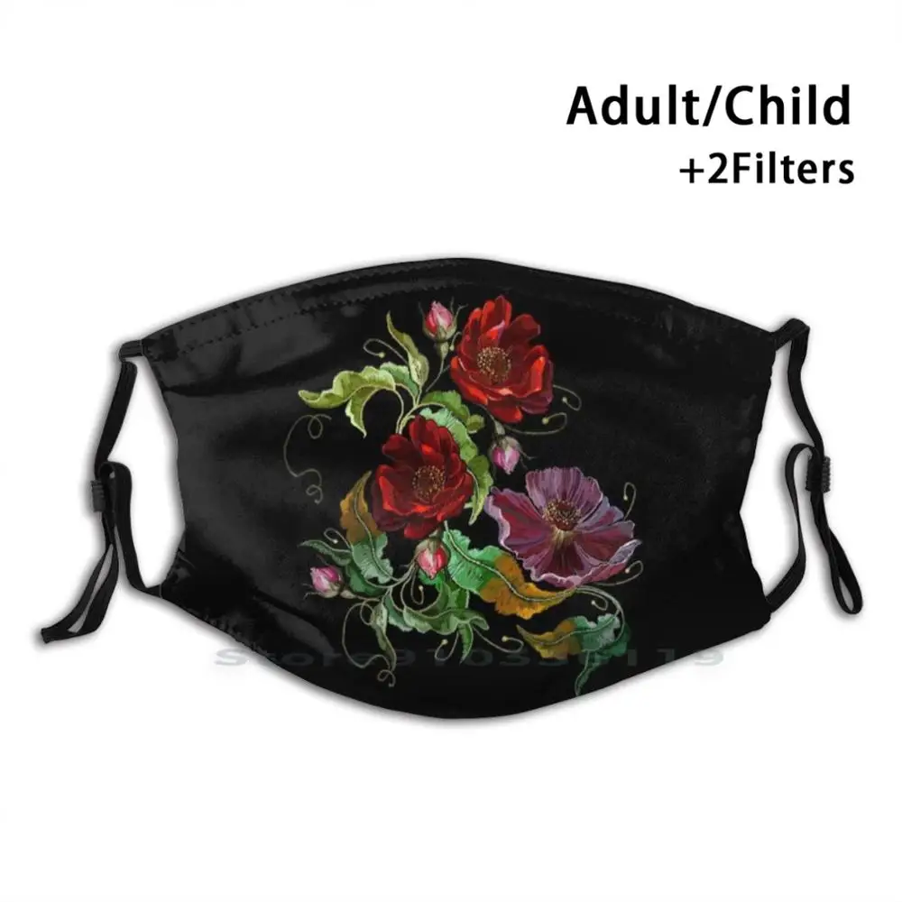 Embroidery Violet Flowers Androses Print Reusable Pm2.5 Filter DIY Mouth Mask Kids Beauty Blossom Botanical Bouquet Bouquet Of
