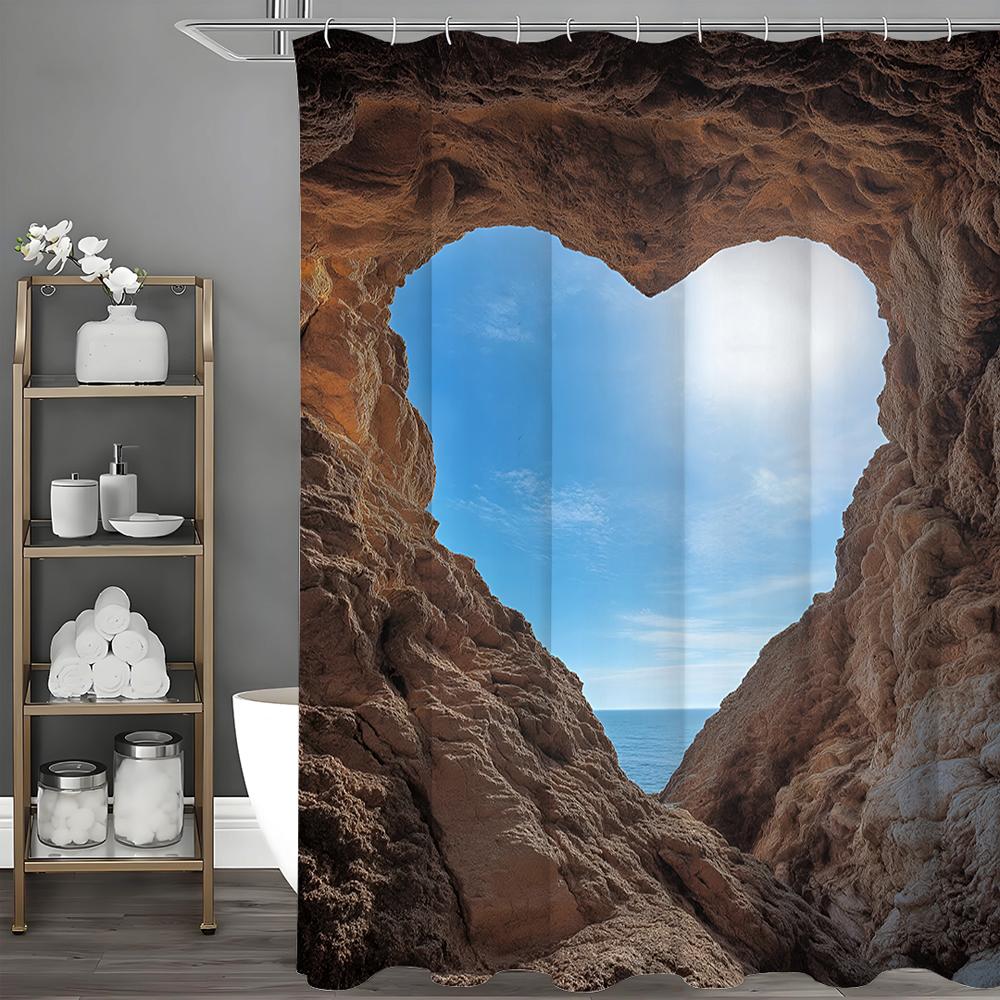 Средиземноморское море Занавеска для душа с отверстием в дереве в форме сердца, Декоративная занавеска для душа для ванной, Водонепроницаемая занавеска для душа с крючком 90*180cm