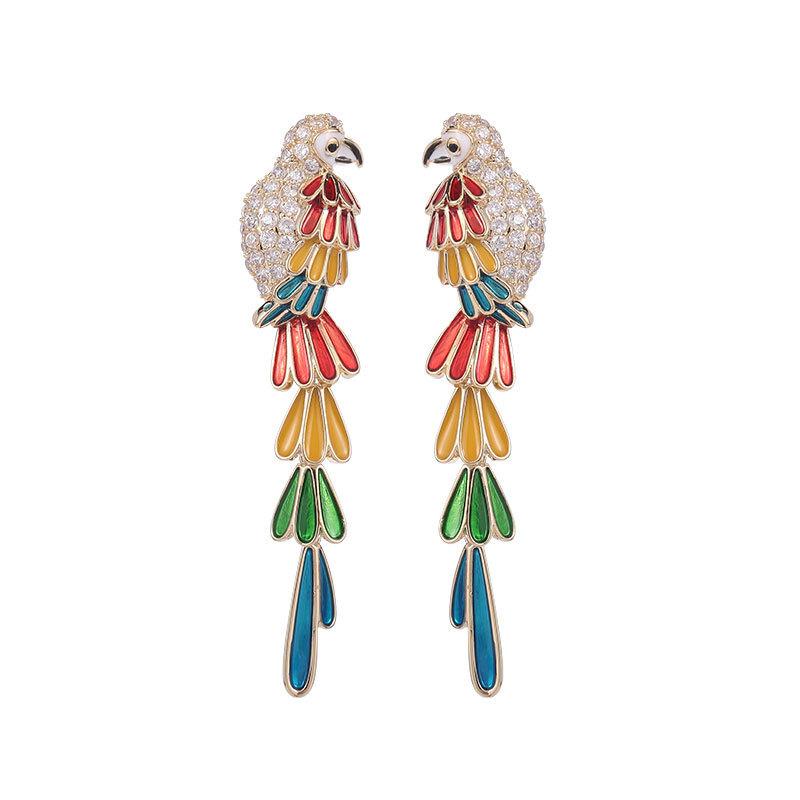 Средневековые Винтажные Украшения Ретро Легкая Роскошь Придворный Стиль Цветные Серьги-Попугаи Капающее Масло Длинные Серьги-Птицы