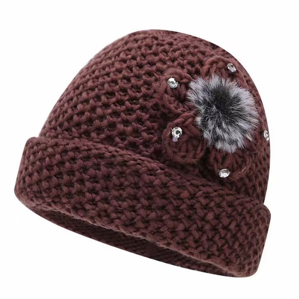 Средние и старые шляпы для женщин, наваленные и утолщенные шляпы для пожилых людей зимой, теплые материнские шляпы, осенние вязаные шерстяные шляпы для пожилых женщин