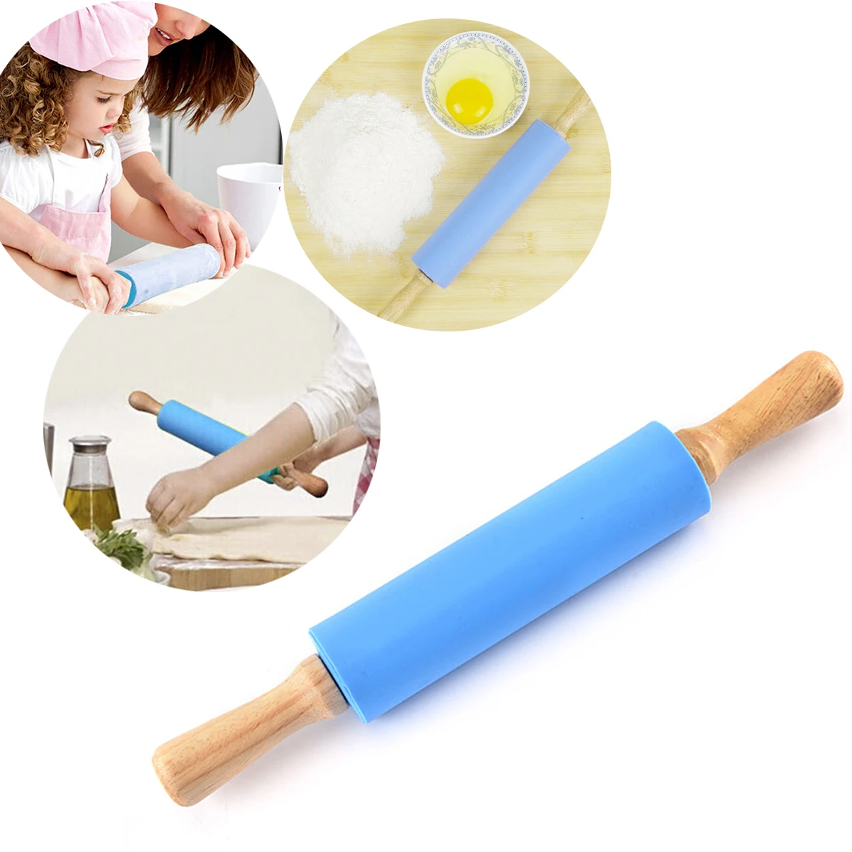 Средняя деревянная ручка синяя силиконовая Скалка с нескользящей поверхностью твердая деревянная ручка Скалка ролик для муки