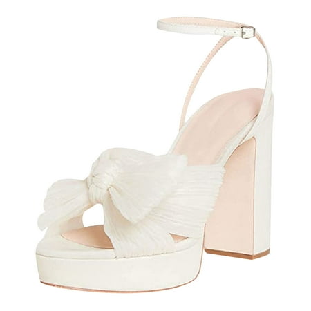 Women s Fashion Waterproof Sandals Thick Heel Bow Silk Sandals Retro Buckle Shoes