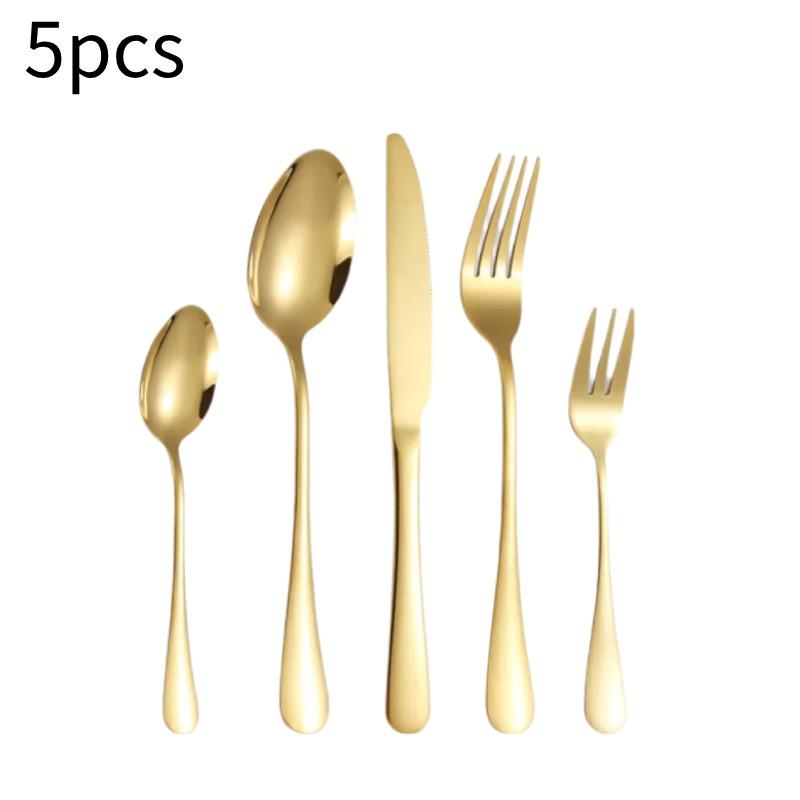 Сталь Нержавеющая 5 шт Ножи Вилки Набор Столовых Приборов Кухня Выпечка Стейк Подарок Торт Golden