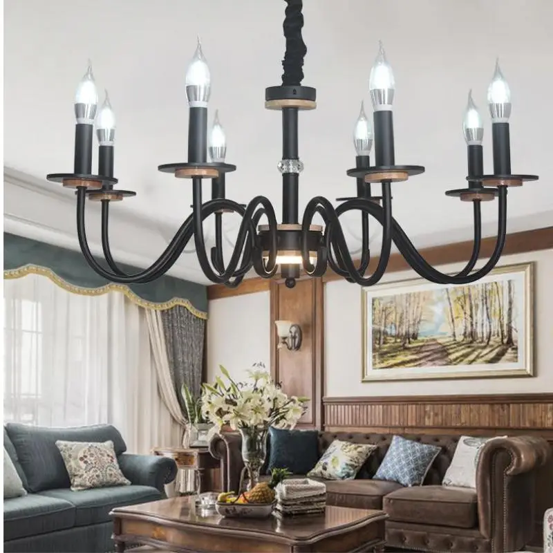 Старинная черная люстра, освещение, кухонная лампа, Ранняя мини-люстра, винтажная железная люстра, потолочные Современные светодиодные люстры для спальни