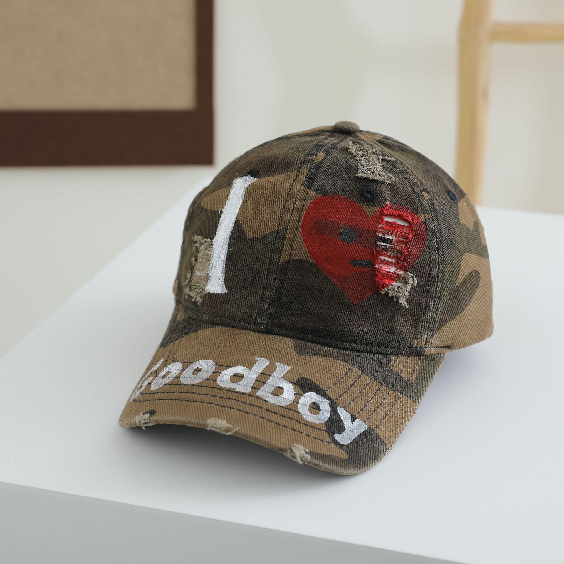 Старый камуфляж выражение любви граффити тяжелая промышленность промытая дырка ковбойская шляпа тренд хип-хоп уличная шляпа тренд M(56-58cm)