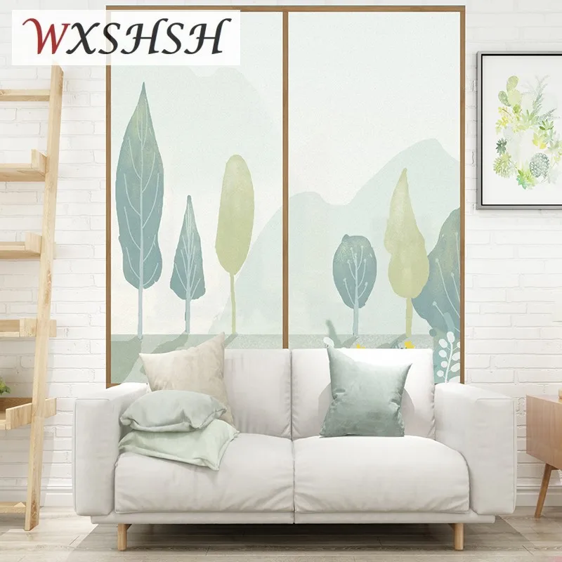 Статическая липкая оконная пленка размером на заказ, ПВХ узор леса, декоративная Защитная стеклянная наклейка конфиденциальности для дома,...