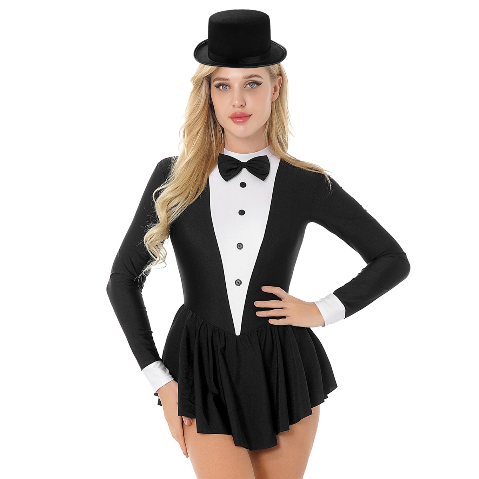 Костюм для джазовых танцев, черно-белый комбинезон с бантом, торжественное платье, костюмы-смокинги, костюм для выступлений фокусника, ролевая игра, тематическая вечеринка