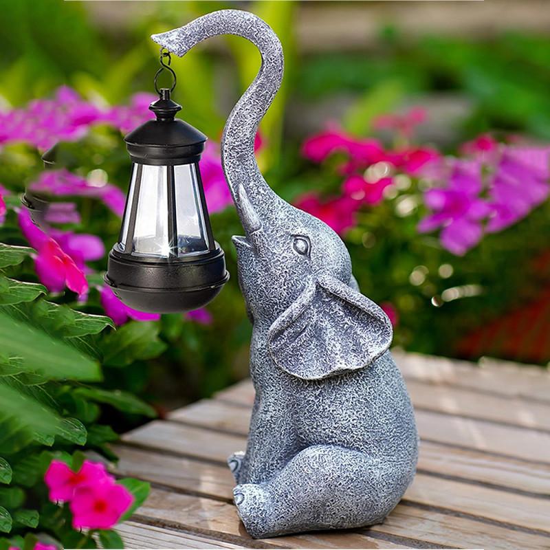 Статуя слона, смола, солнечная декоративная лампа, милый креативный светильник для двора слона, солнечный уличный светильник для статуи для двора, балкона, дорожки