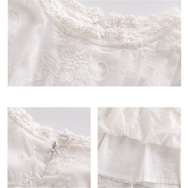 Summer Children Lace Princess Dress Clothes Baby Girls Cotton Embroidered Print White Dress for Beach Holiday 4 5 6 8 11 13 Year