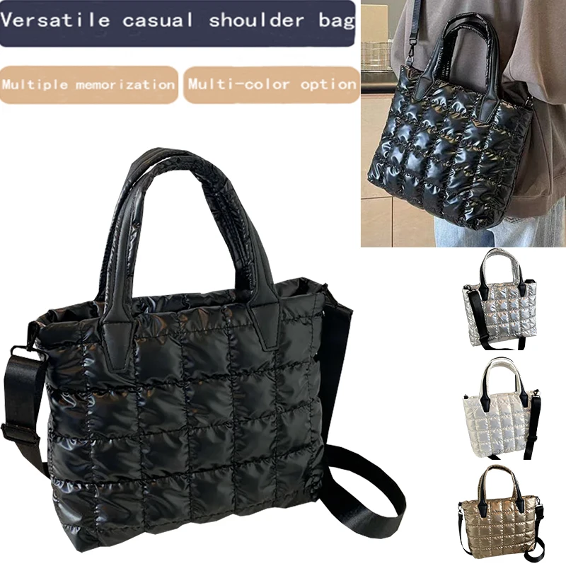 Стеганая многоцветная глянцевая большая сумка, универсальная повседневная сумка, с несколькими отделениями, портативная/через плечо, модная блестящая текстура, повседневная поездка на работу