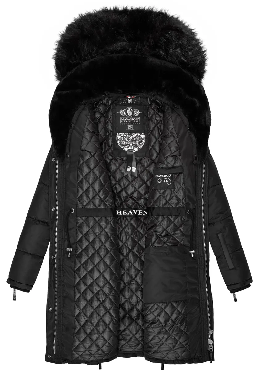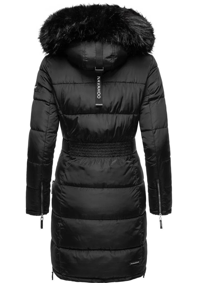 Стеганое пальто Наваху "Синья", стильная зимняя парка с элегантным искусственным мехом Navahoo, черный