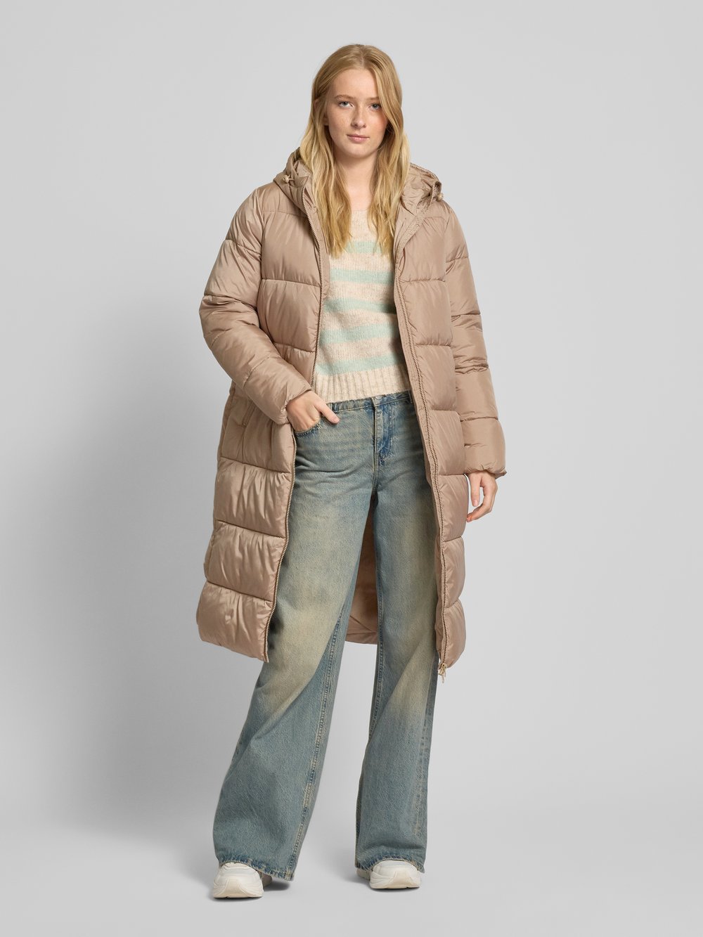 Стеганое пальто прямого кроя с карманами на молнии, модель «МОНТАНА» Only, песочный