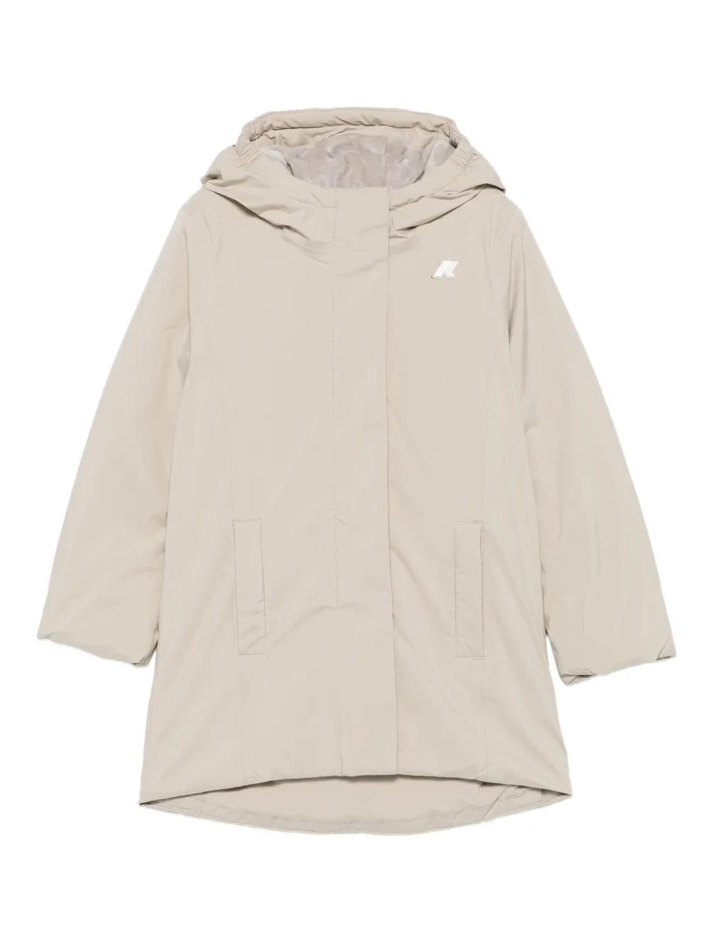 Бежевый стеганый дизайн классический капюшон застежка-молния спереди длинные рукава деталь с логотипом