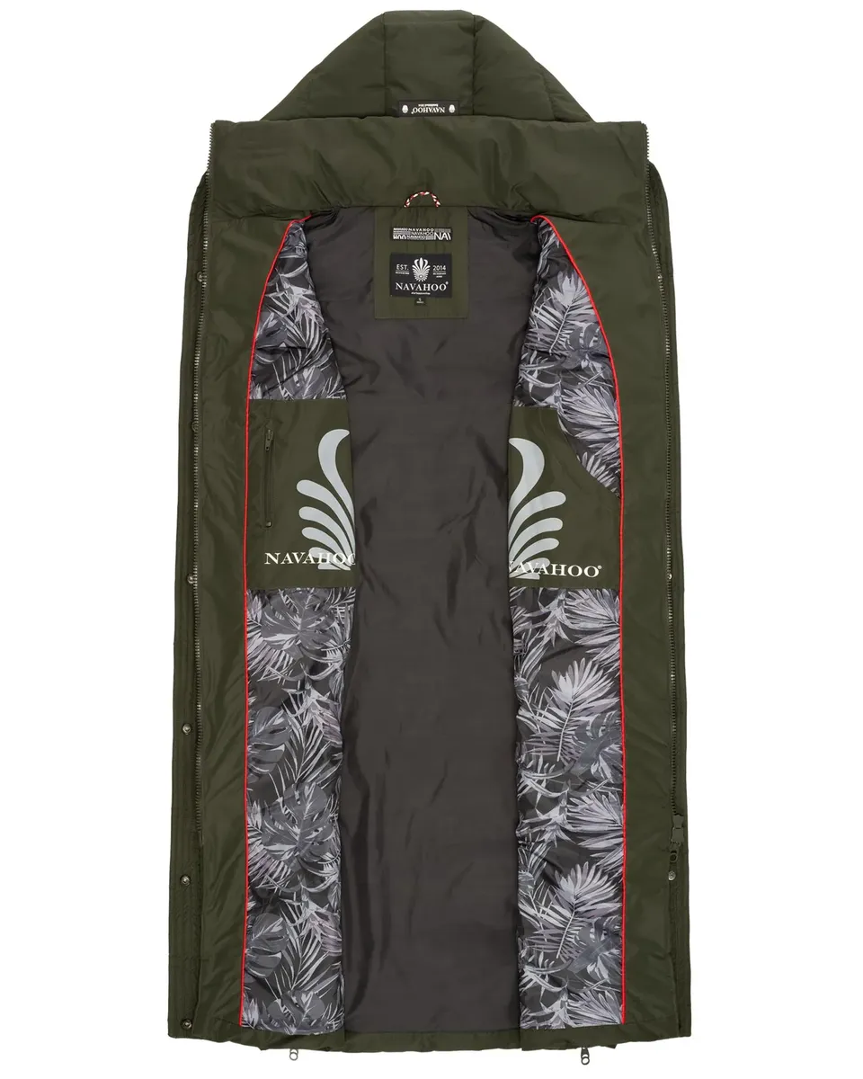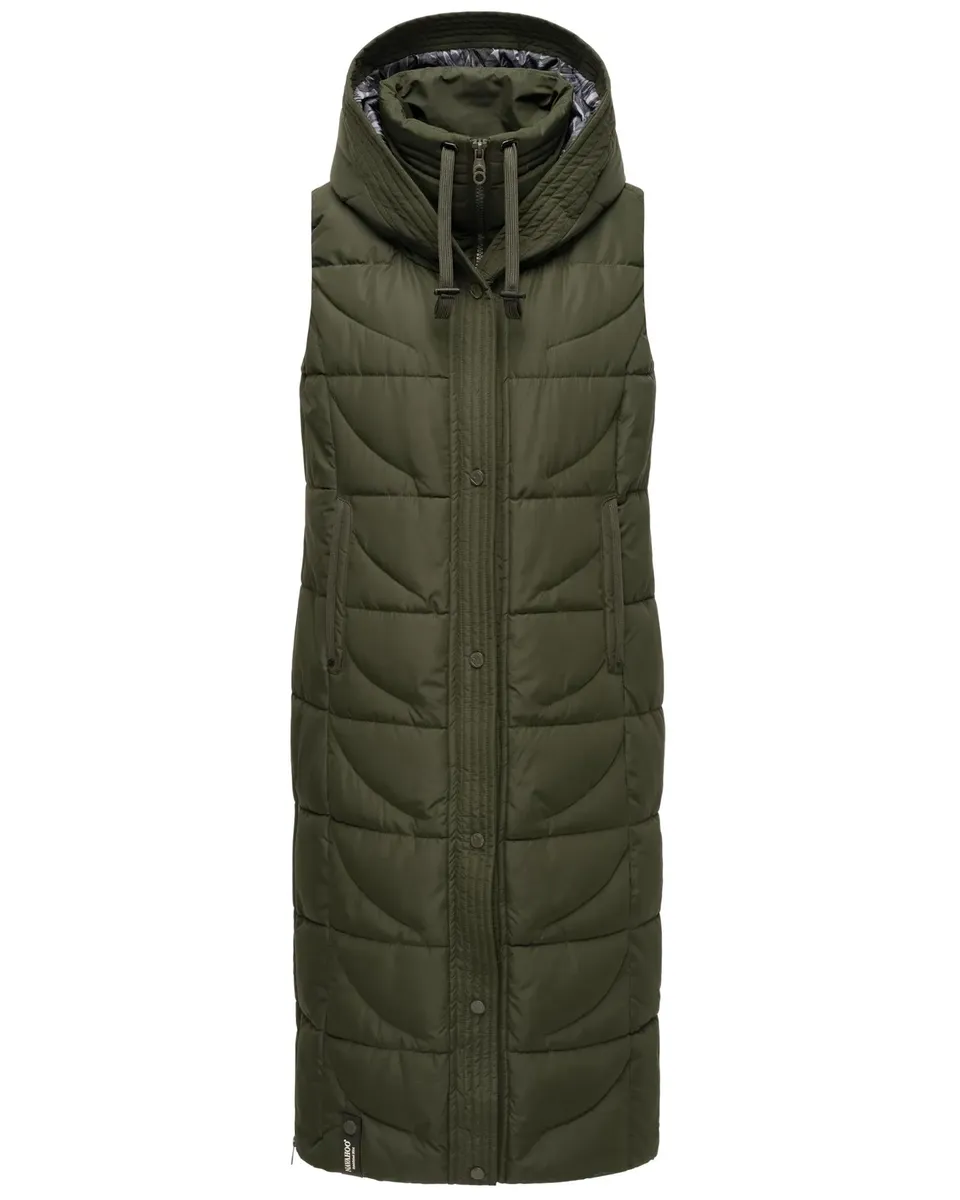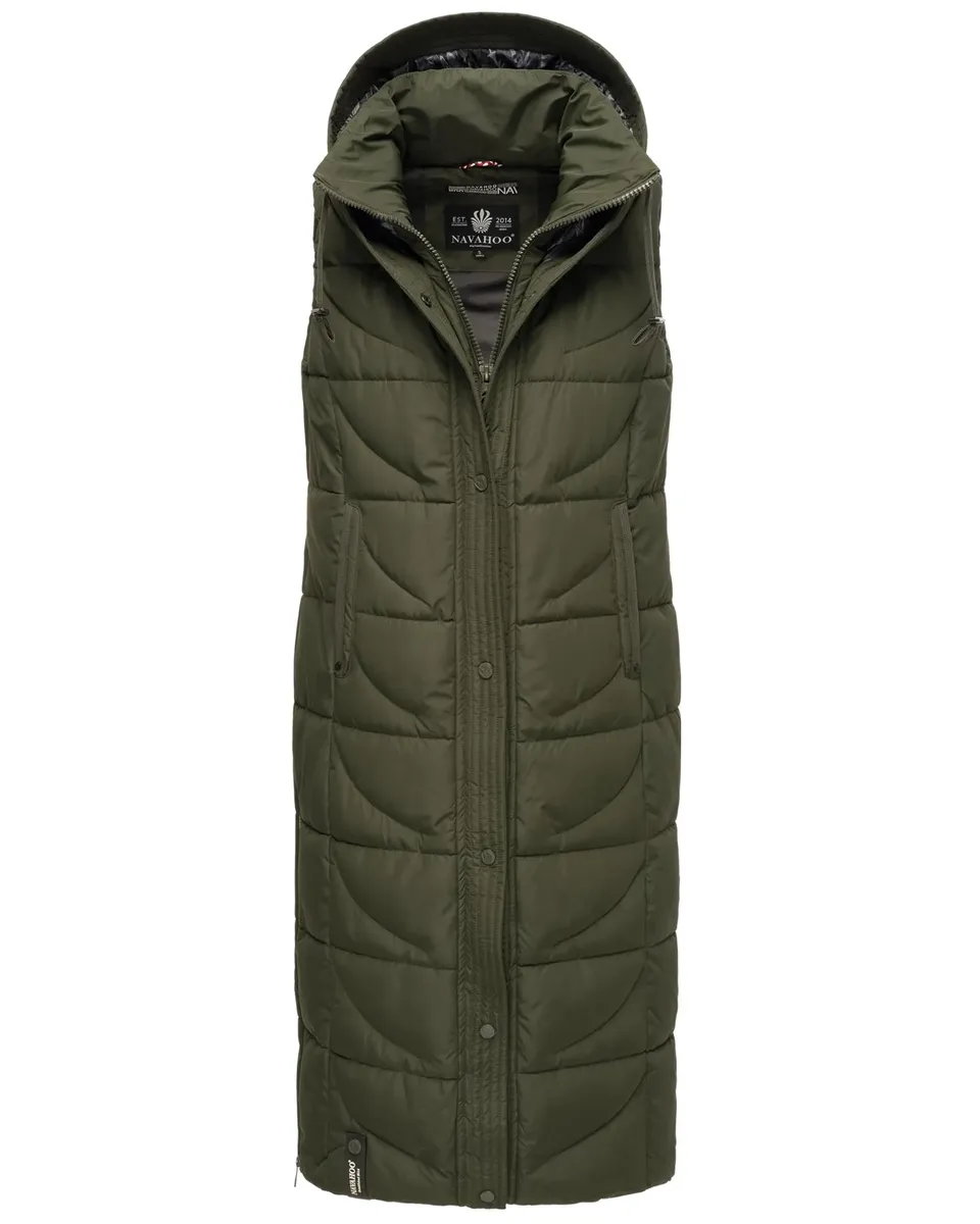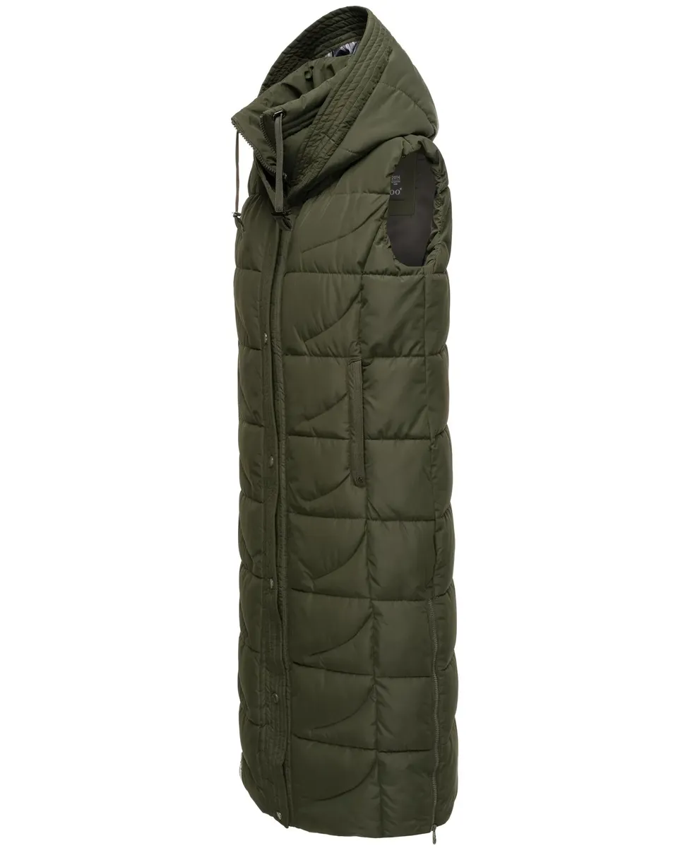 Стеганый жилет Navahoo "Крендель", теплый, длинный женский уличный жилет с капюшоном, зеленый