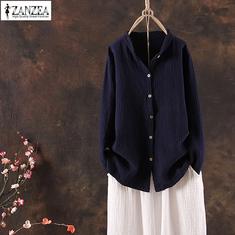 2019 ZANZEA Women Spring Casual Cotton Linen Blouse Female Button Down Shirt Ladies Long Sleeve Party Blusa Femininas Robe Top