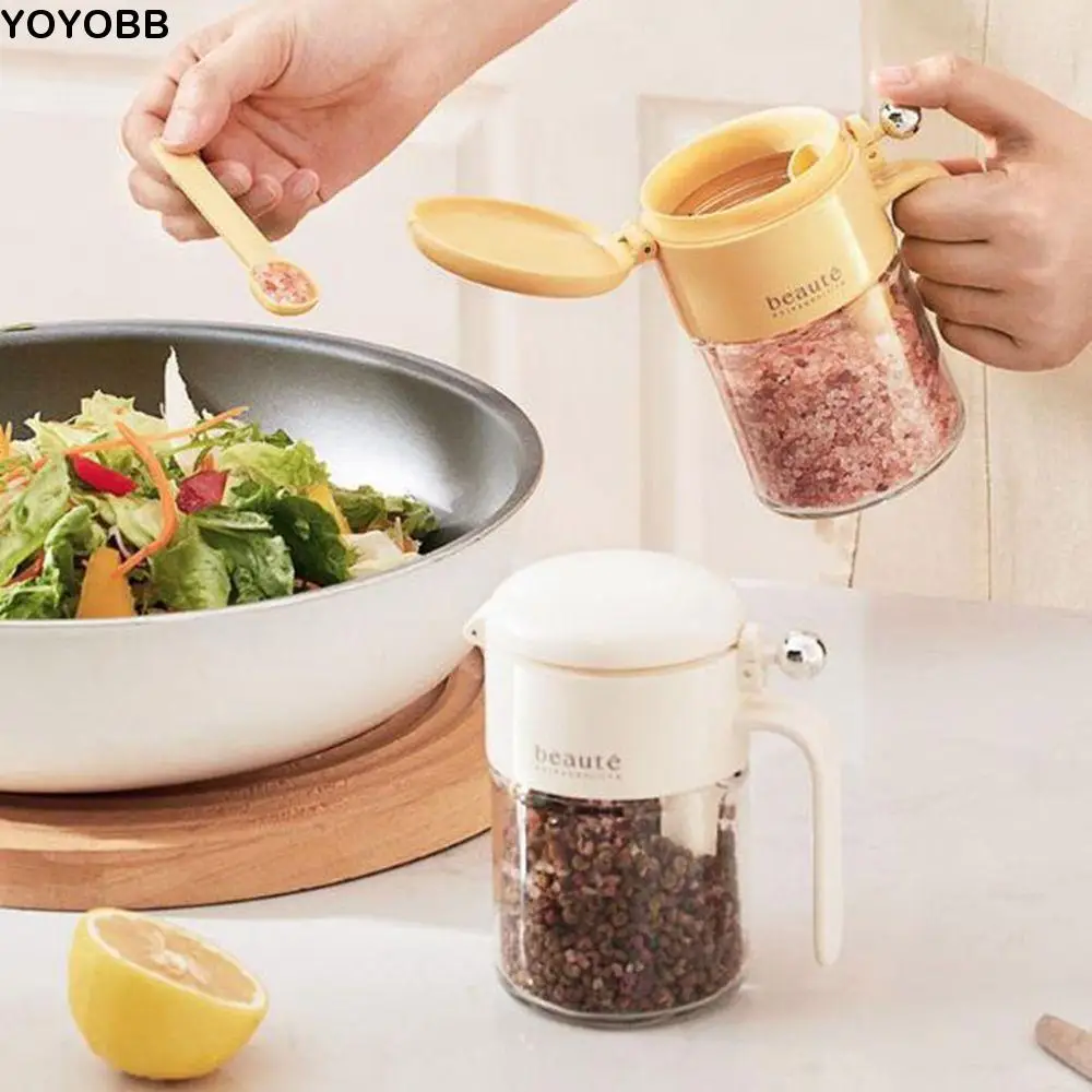 Стеклянная банка для приправ, 400 мл, большая емкость, герметичная банка для приправ, влагостойкая с ложкой, коробка для приправ для соли для дома