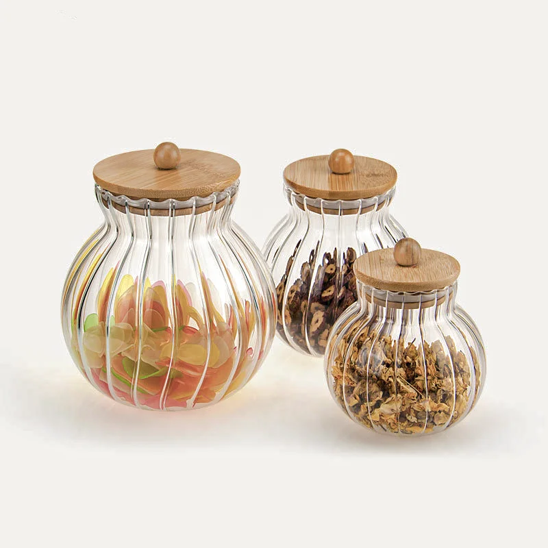 Стеклянная банка для хранения в виде тыквы в полоску, домашнее украшение, Необычные прозрачные украшения, герметичный контейнер для специй