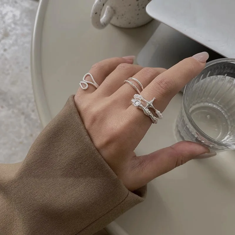 PANJBJ 925 Sterling Silve Pearl Stars Overlapping Ring for Women Simple Double Layer Personality Korean Jewelry Dropshipping