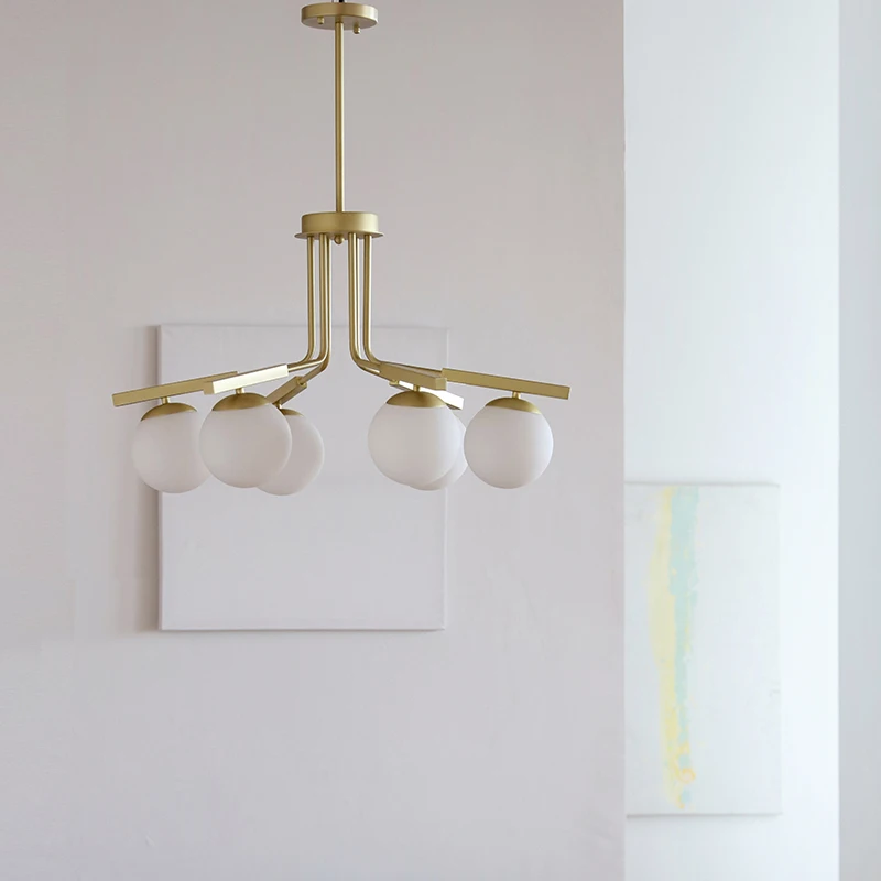 Стеклянная люстра для гостиной, Скандинавская лампа из меди и железа для спальни, современная и простая Роскошная быстрая