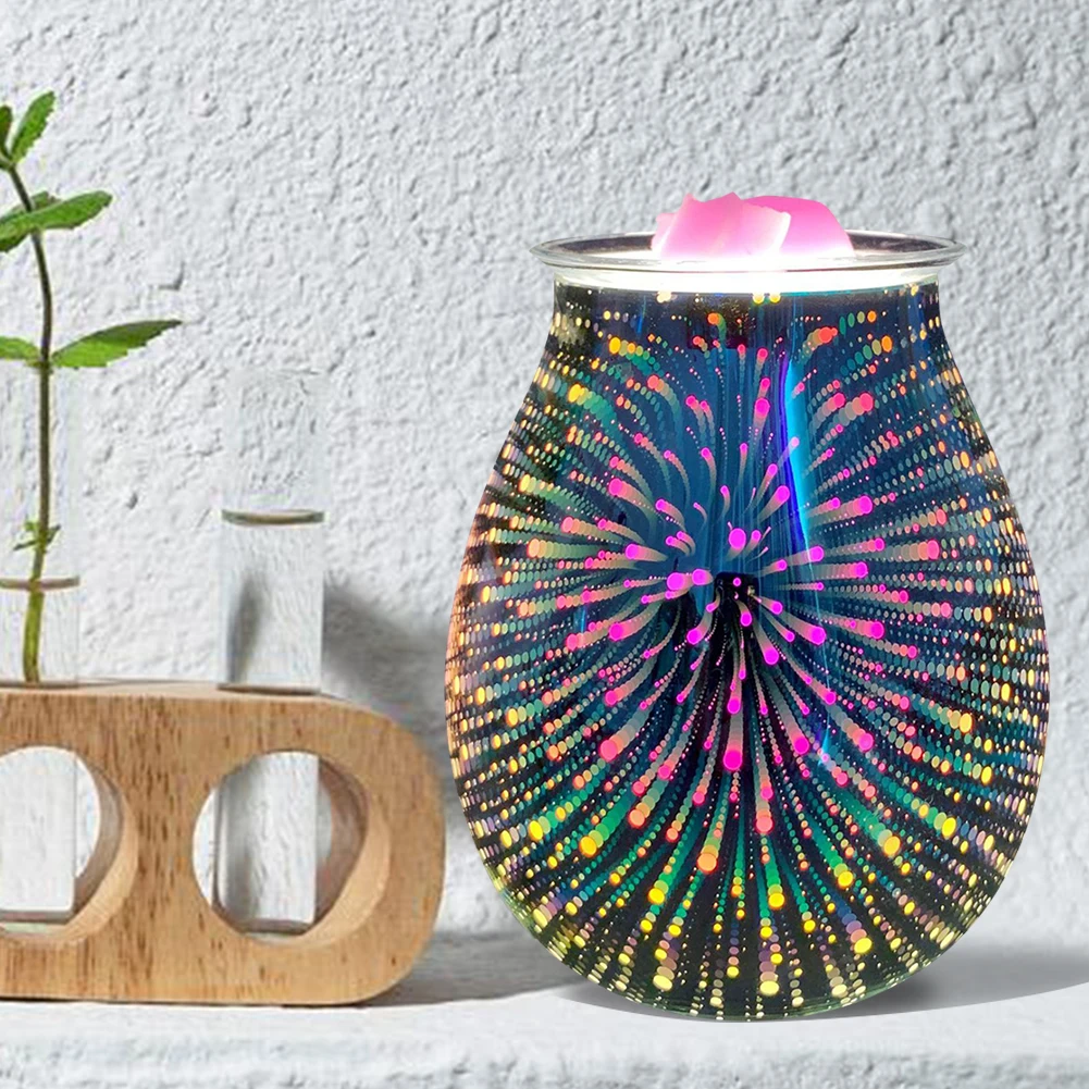 Стеклянная масляная горелка с фейерверками и 3D эффектом, ночсветильник, нагреватель для воска, ароматическая свеча, декоративная лампа, бри...
