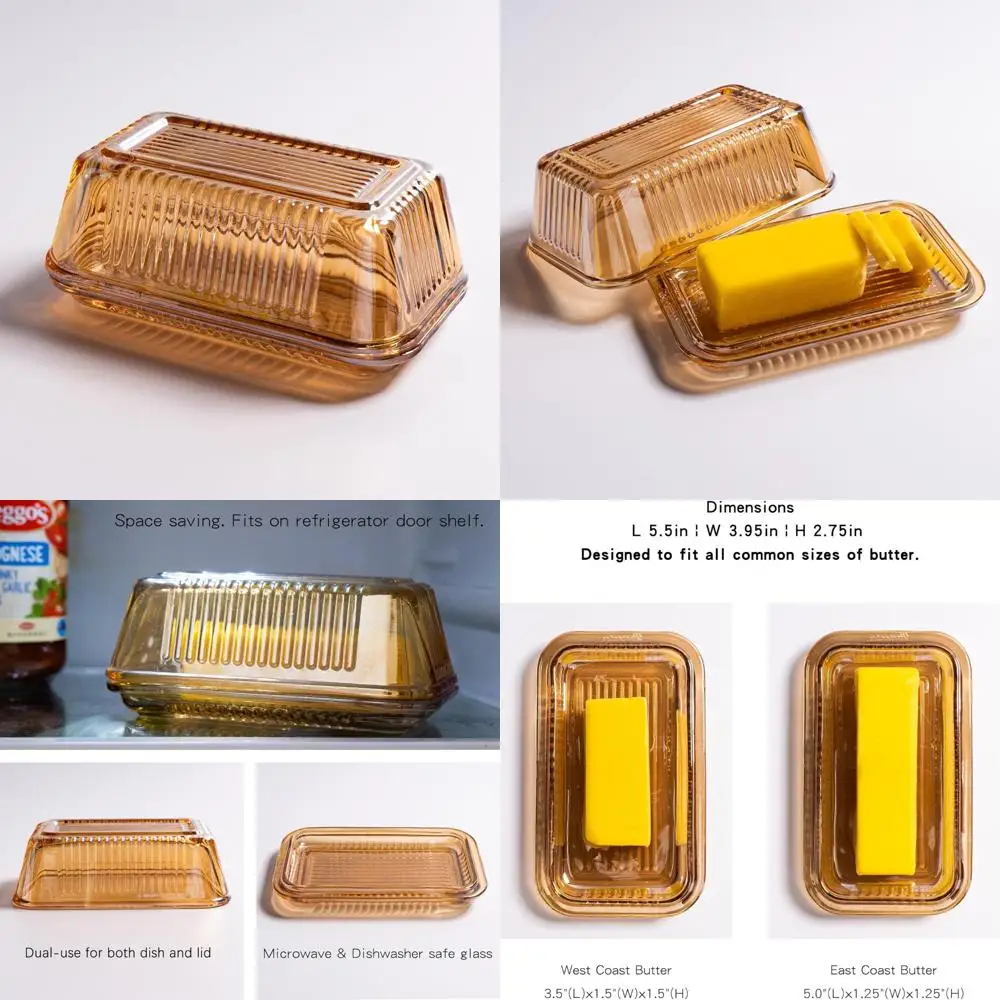 Стеклянная тарелка для масла цвета шампанского с крышкой для кухонной столешницы, поднос для держателя масляной палочки, хранилище для масла из хрустального стекла