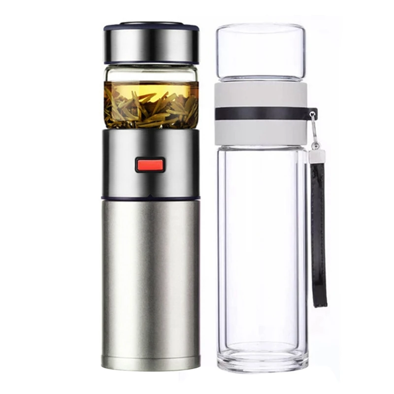 Стеклянная чайная бутылка 350 мл с двойными стенками, ситечко для заваривания чая, стеклянные фильтры из нержавеющей стали, стеклянная бутыл...