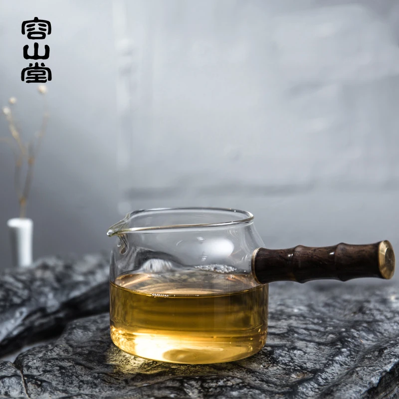 Стеклянная яркая чашка с деревянной ручкой, толстая большая термостойкая Боковая ручка, чайник для чая, столовый набор для чая