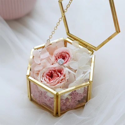 Стеклянное кольцо с вечным цветком в коробке, подарок на день рождения, украшение для дома, обручальное, свадебное, свадебное, фото, реквизит...