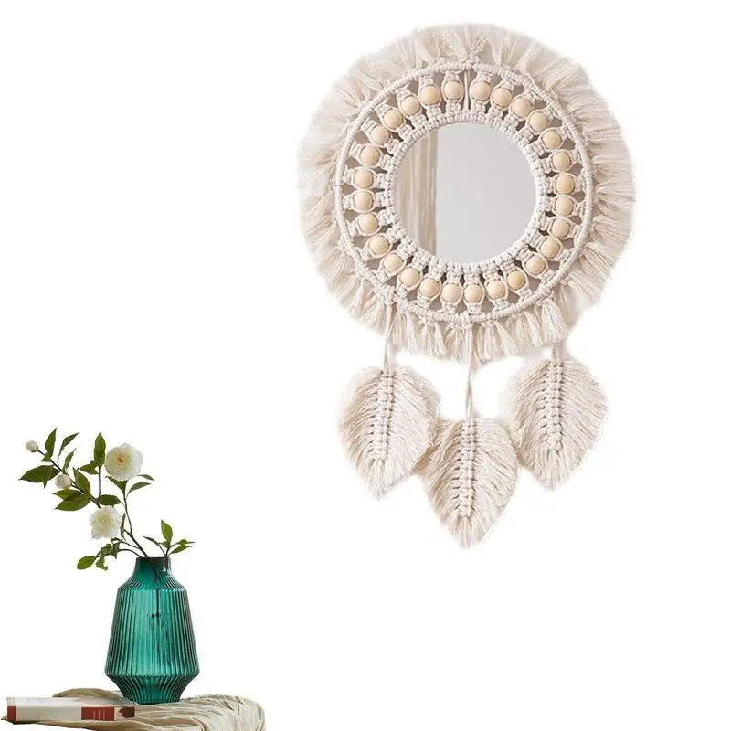Стеклянное настенное зеркало скандинавские макраме плетеные в форме пера Гобеленовые зеркала с хлопковой веревкой настенное зеркало для д...