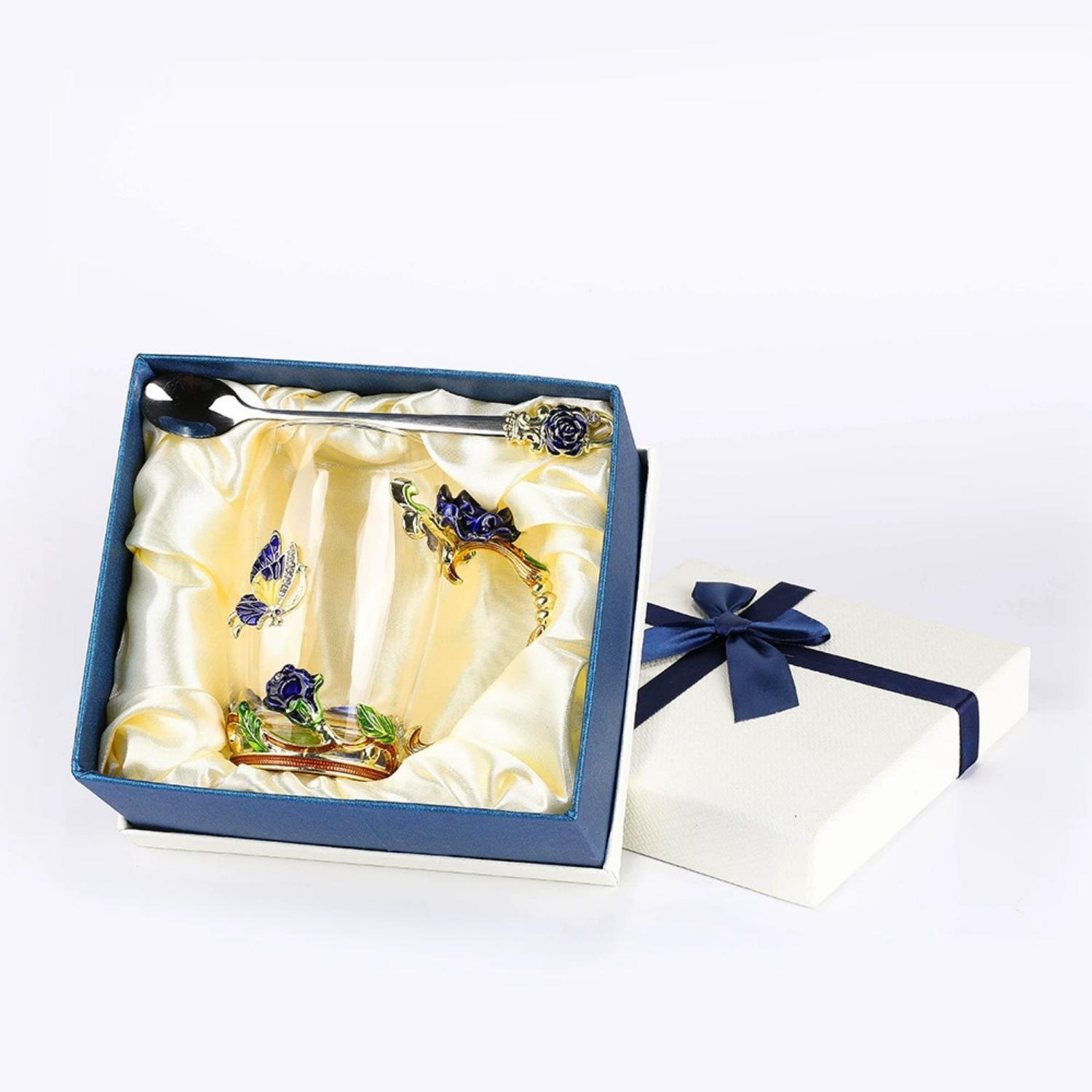 Стеклянные кружки для кофе с эмалью в виде бабочки и цветка ручной работы, чайная чашка с ложкой, подарки на день рождения, Рождество для нее, женщины, мамы, подруги, учителя, валентинки Gift box