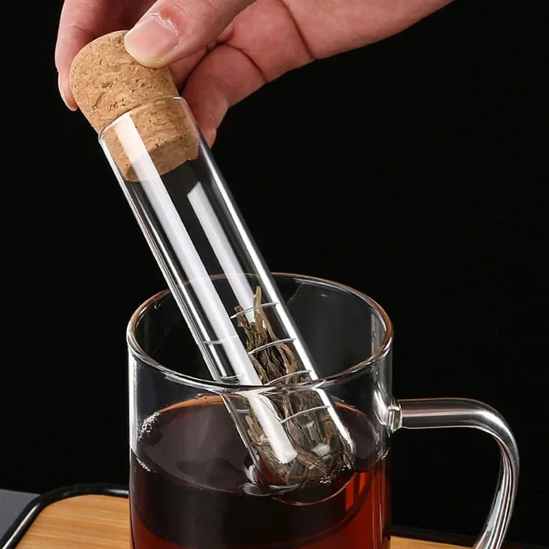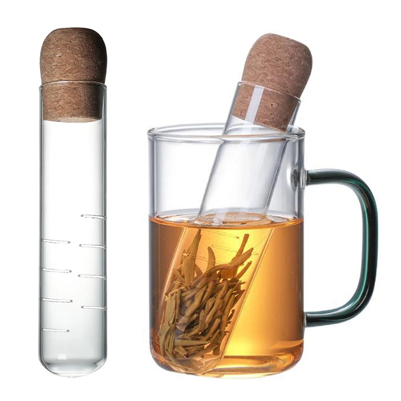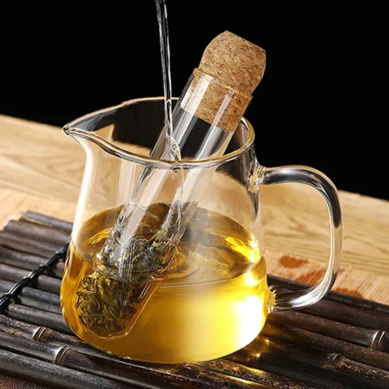 Стеклянный заварочный чайник, креативная трубка, ситечко для чая, фильтр для листового чая, заварочная трубка, стеклянный диффузор с пробкой для кружки, чайные аксессуары