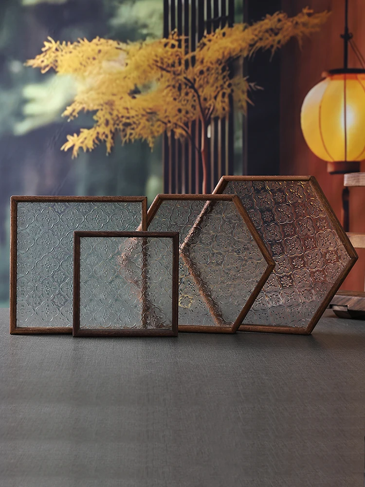 Стеклянный поднос в стиле ретро с цветком боярышника, деревянный чайный сервиз, тарелка для хранения, прямоугольный медленный поднос для чайных очков, фруктов и чашек в дочелю...