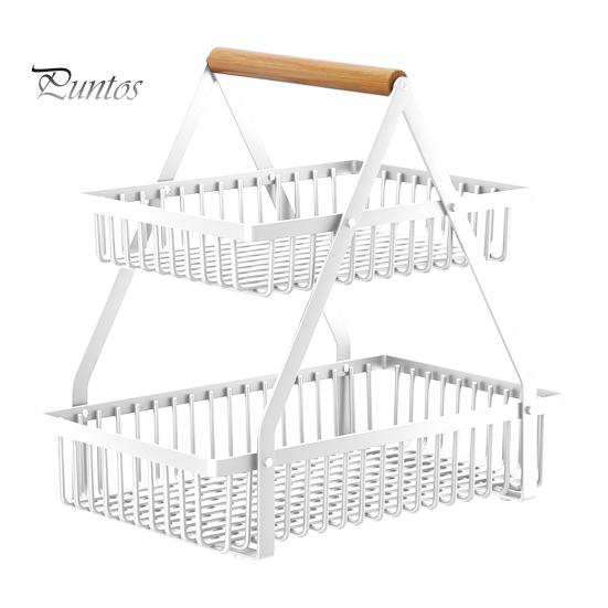 Стеллаж для хранения овощей, двухъярусная корзина для фруктов с деревянной ручкой, большая вместимость, прочный несущий металлический держатель для фруктов, овощная корзина S белый
