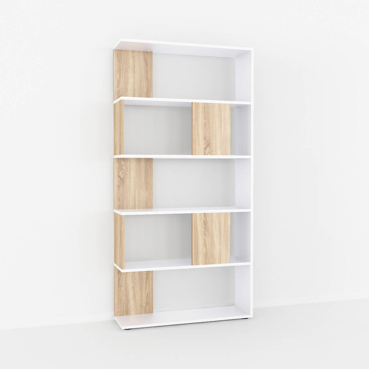 Стеллаж книжная полка, разделитель комнаты, 5 полок, этажерка G0072 Белый / Дуб Сонома