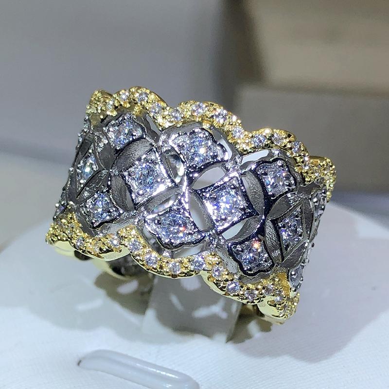 Стерлинговое медное кольцо-центр с золотым цирконом для дам и мужчин, кольцо-корона, парные украшения для вечеринки, подарок на день рождения 8