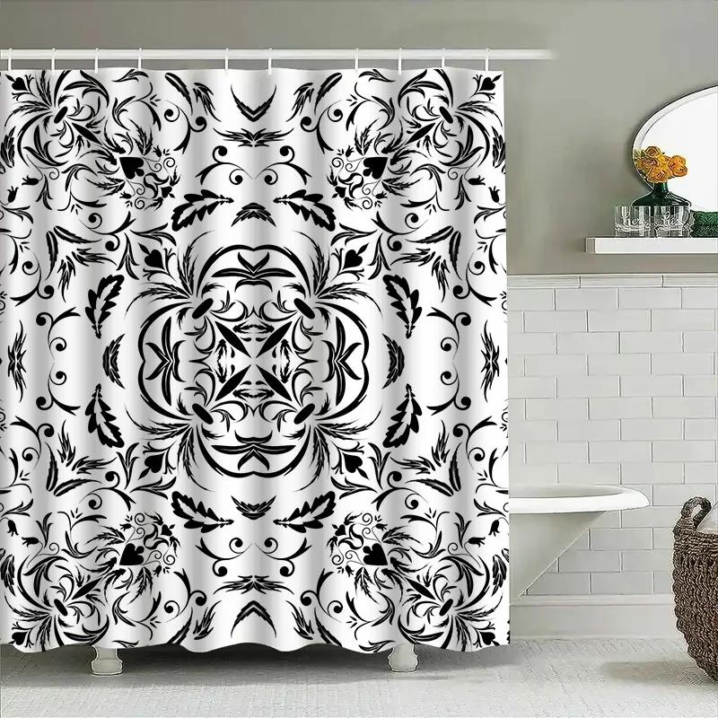 Стильная Цветочная Занавеска для Ванны и Душа Черно-Белый Узор для Декора Ванной Комнаты – Водонепроницаемая Ткань с Карманом для Штанги для Легкого Подвешивания i W90xH180cm
