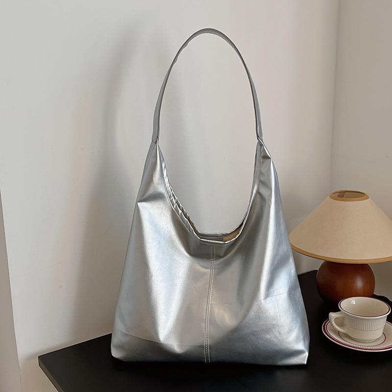 Стильная большая вместительная сумка-тоут женская однотонная одноплечевая простая сумка для отдыха и поездок на работу серебряный