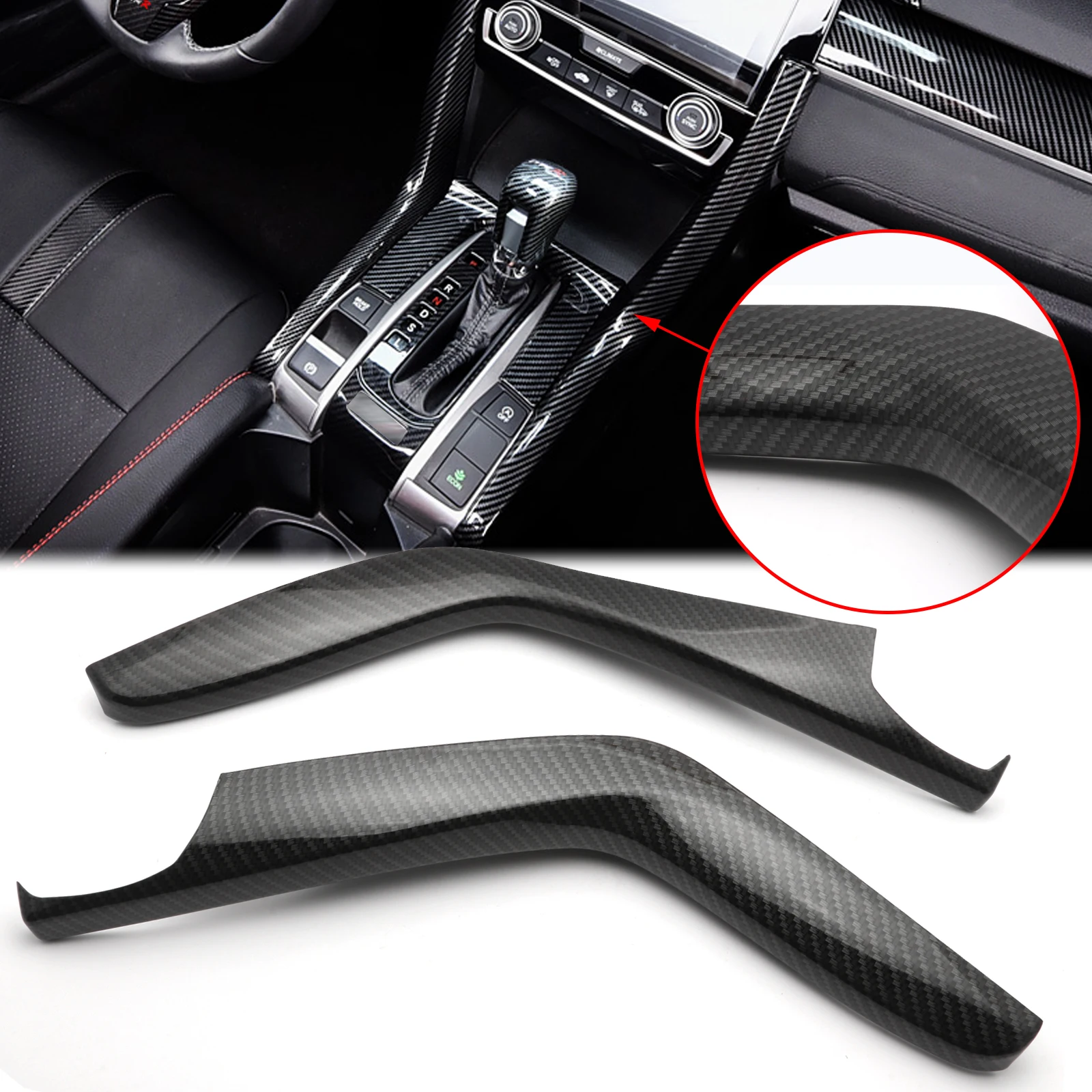 Стильная внутренняя центральная консоль из углеродного волокна, переключение передач, боковая панель, полосатая крышка, формовочные Планк...
