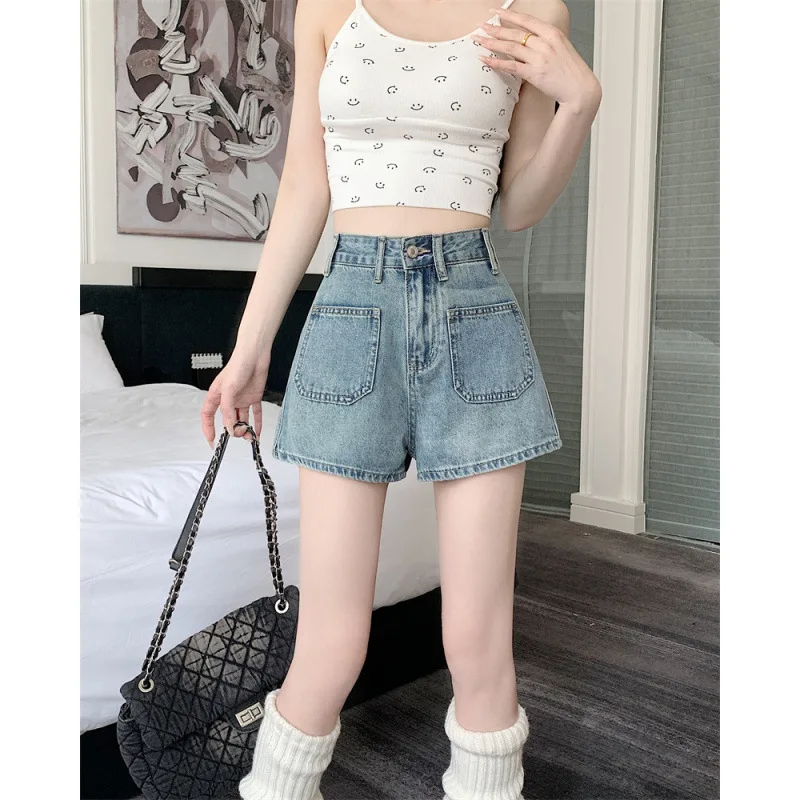 Модные джинсовые шорты с высокой талией в американском стиле, свободные широкие шорты трапециевидной формы в стиле ретро, новинка лета 2025 года, тонкие женские шорты