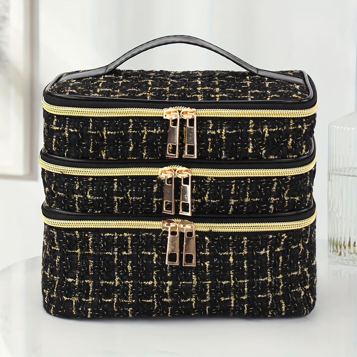 Стильная и легкая косметичка большой вместимости с черной сеткой и тремя слоями, портативная сумочка, подходит для использования дома и в путешествиях