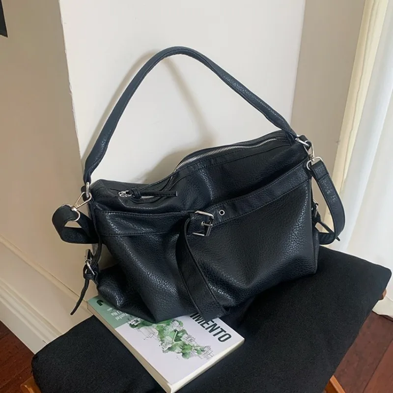 Стильная модная мотоциклетная большая сумка, черная сумка через плечо большой вместимости, универсальная повседневная сумка для путешествий, кошелек для подмышек