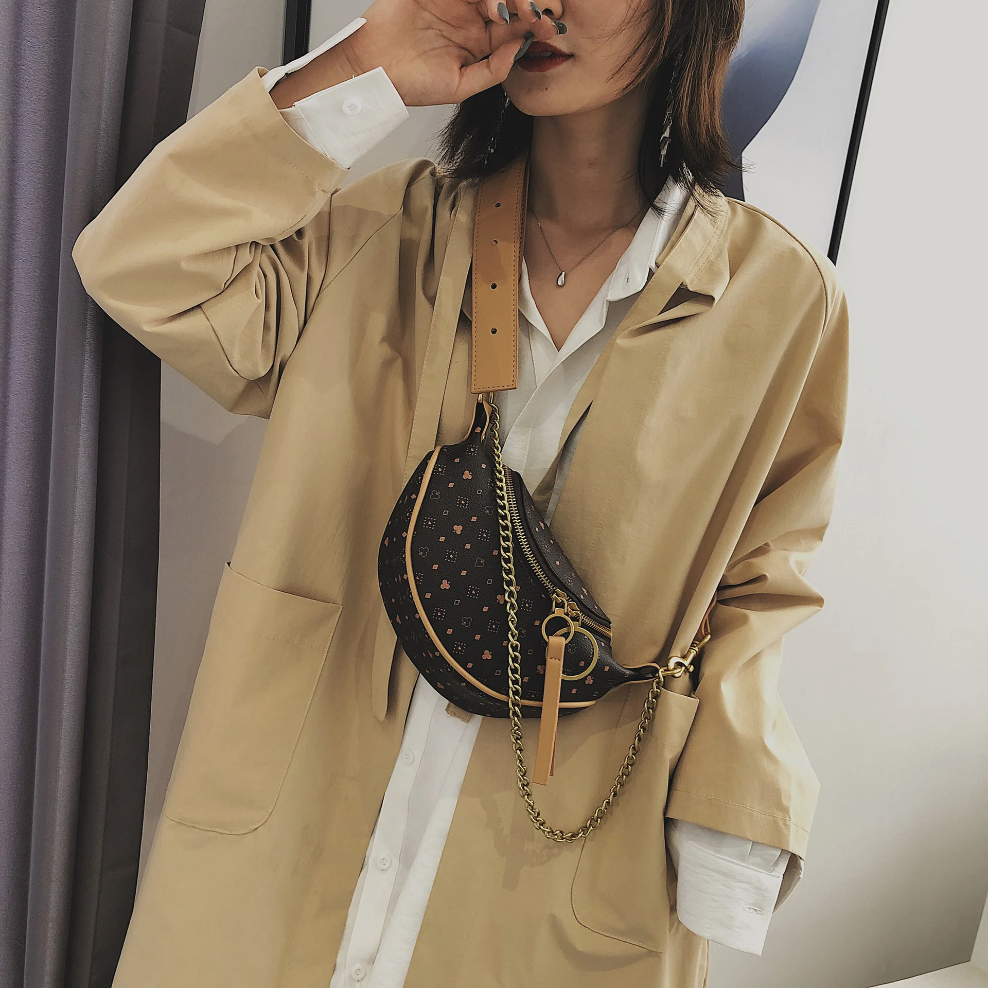 Стильная поясная сумка с принтом женская модная осенне-зимняя новая Универсальная нагрудная сумка с цепочкой