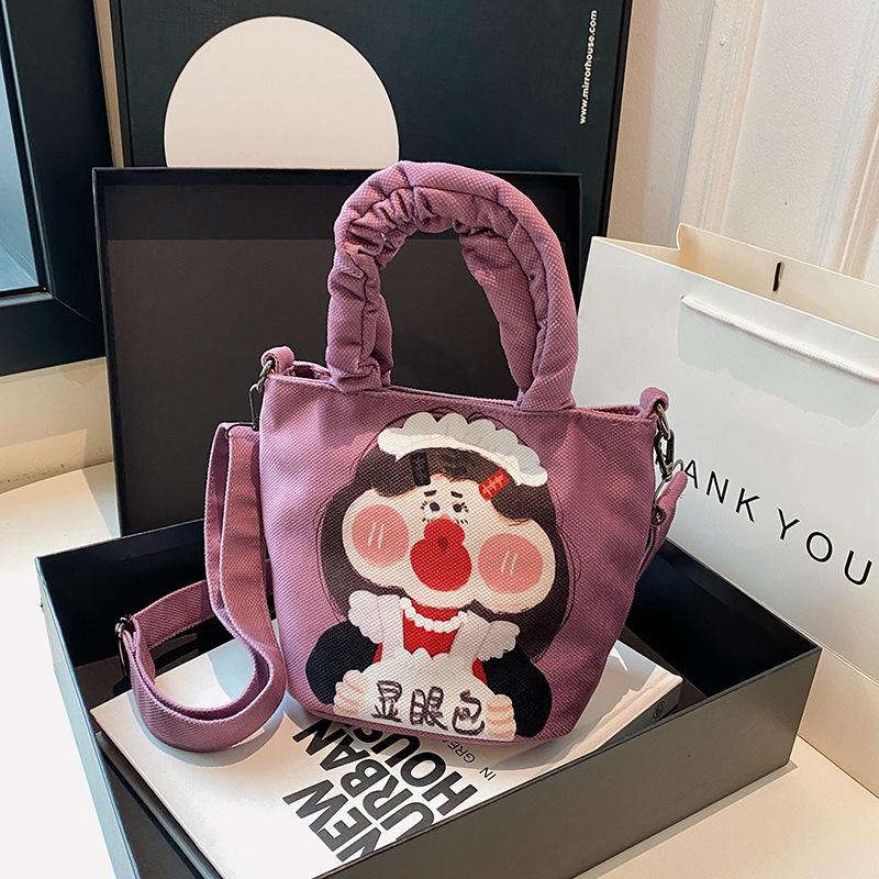 Стильная и простая портативная сумка-тоут, мультяшная милая иллюстрация, сумка-ведро на одно плечо, универсальная сумка на одно плечо через плечо, маленькая тканевая сумка One Size