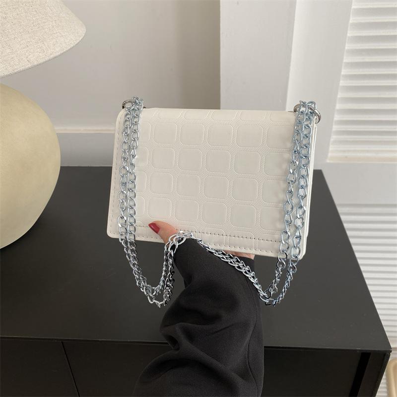 Стильная и простая сумка иностранного дизайна для женщин 2024 года, зимняя новая корейская версия, цепочка подмышкой, плечо, косой пролет, маленькая квадратная сумка белый