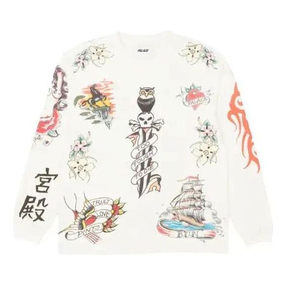 Толстовка inky long sleeve white chinese character pattern round neck Palace, белый